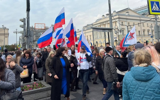 Тысячи людей собрались, чтобы поддержать вхождение ДНР, ЛНР и освобожденных территорий в состав Российской Федерации.