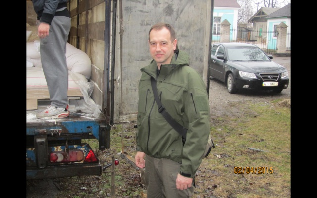 Машина с гуманитарным грузом от партии "РОДИНА" прибыла в Донбасс утром 2 апреля. На границе её встречал член Президиума, руководитель Исполкома партии Евгений Ивлев.