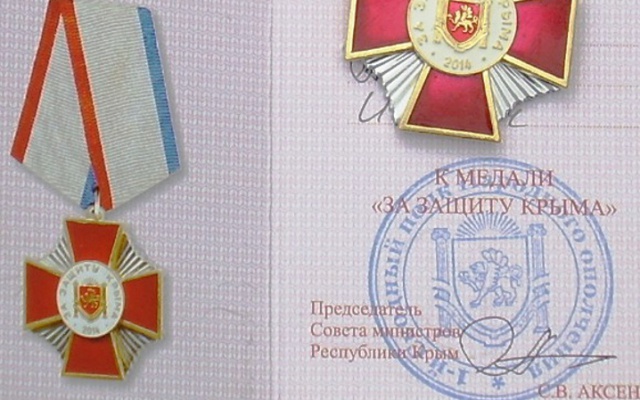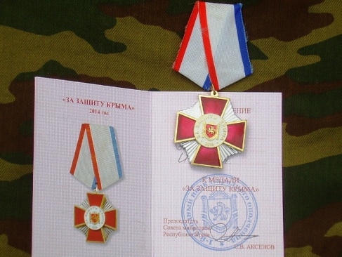 28 июня на вершине легендарной горы Митридат в Керчи представители самообороны города торжественно вручили медаль «За защиту Крыма», подписанную исполняющим обязанности главы Республики Крым Сергеем Аксёновым, депутату Керченского городского совета, куратору керченского отделения Всероссийской политической партии «РОДИНА» Ивану Кошелю.