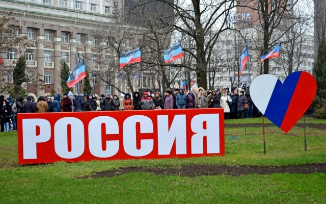 • Митинг, посвящённый второй годовщине воссоединения Крыма с Россией, прошёл в Донецке