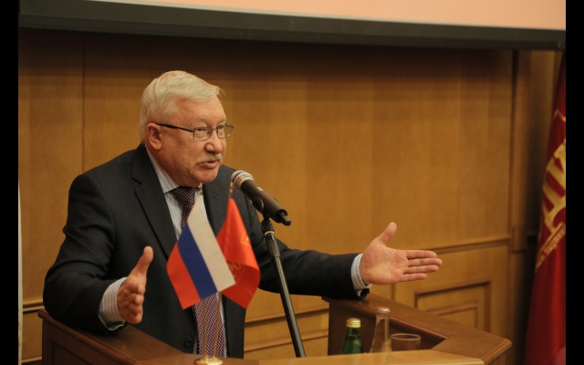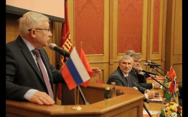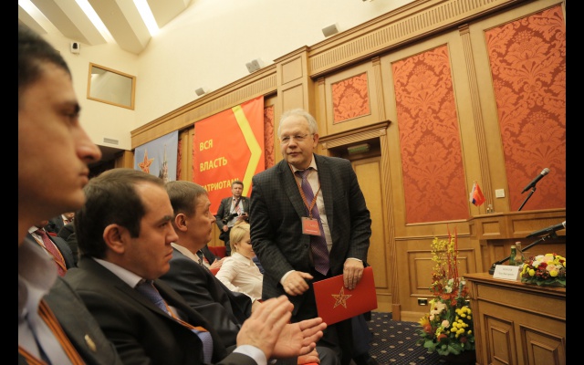Морозов выступил с речью перед социал-патриотами. Он рассказал об истории избирательных кампаний в России.