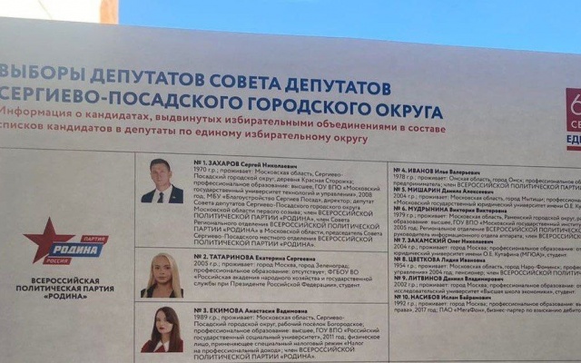 Напомним, что партия "РОДИНА" в Московской области выдвинула и зарегистрировала 47 кандидатов в депутаты в городские парламенты Сергиева Посада, Щелково, Дзержинского и Реутова.